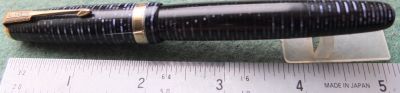 par1316: A beautiful condition Debutante-size vacumatic fountain pen in black from 1940 with a very nice single-colour broad grade flexible 14ct gold nib £95.00 |