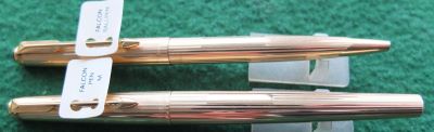 par709: A mint unused gold-plated Falcon fountain pen and ballpen set in superb condition and in its original box; this set has not been used at all; the pen has a fine grade nib that will be nice to write with; from around 1980 £165.00 |