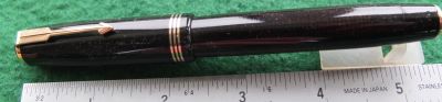 par1320: A very nice condition Lady-size ring-top Duofold fountain pen in black from 1930 with a very nice medium grade 14ct gold flexible nib. Canadian made. £65.00 SOLD |