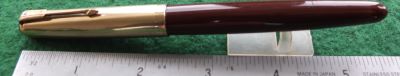 par1298: A very nice condition used Parker 51 Vacumatic fountain pen in cordovan brown with a gold-filled cap and a clip; the pen has a very nice medium grade 14ct gold nib £85.00 |