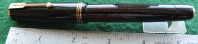 par1304: A very nice condition Senior-size Duofold fountain pen in brown and black herringbone from 1943 ish with a very nice medium grade 14ct gold nib; the nib has a little flex; this is a very desireable pen and hard to find especially in this condition. £425.00 SOLD |