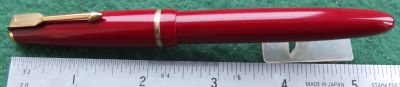 par1255: A mint uninked 51 aerometric in red with a lustaloy cap; the pen has a medium grade 14ct gold nib and writes nicely; this is a lovely example of a desireable pen that still has the original factory chalk marks on the barrel. £195.00 SOLD |