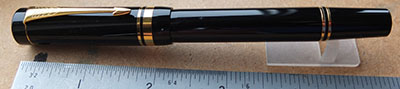 par896: A Parker Premier in blue and black marbled finish from 1932 or thereabouts in good mechanical condition with a nice fine grade 14ct gold nib and a single cap band £95.00 SOLD |