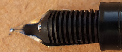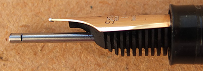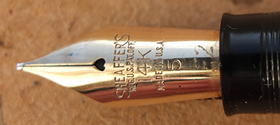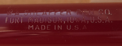 This pen, made in USA around 1956, is in very nice condition and I don't think it has had a lot of use; its date means its been around a while and obviously been handled so it has a little very-fine surface scratches consistent with that handling; the pen is a snorkel-filler and has the most beautiful fine grade 14ct gold nib; there are no cracks, splits or dings and the clip is secure; the imprint is crisp.