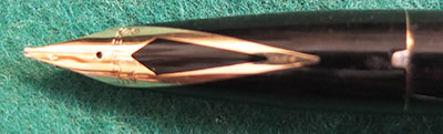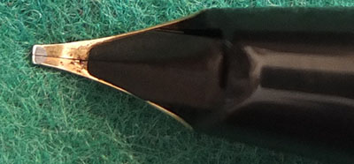 This pen is in quite nice condition and has been used; it dates from around 1970; it has no cracks or splits and no dings either; the clip is secure. The nib is a 14ct gold broad stub grade and the pen is a piston-filler; a delightful pen for everyday use, and nice to handle too.