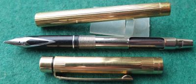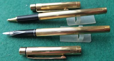 This pen set is in quite beautiful condition and I think it has not been used very much; it dates from around 1985; it has no cracks or splits and no dings either; the clips are secure. The nib of the fountain pen is a steel fine grade and the pen is a cartridge or converter-filler and has a converter fitted; the set is supplied with a new set of slim cartridges; a delightful pen set for everyday use, and will last for years to come too.