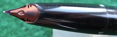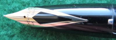 This is another black PFM III pen and pencil set in perfect mechanical and cosmetic condition; it has been used but it is not damaged and the nib shows no sign of wear; the clips are secure. The nib is a lovely medium grade 14k gold and writes nicely. The pencil has spare leads and a new eraser.