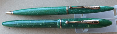 shea290: A Sheaffer PFM 5 in green with gold-plated cap and trim and with a fine grade 14ct gold nib; this one is very nice and writes so nicely too; this pen has been used so there are a few tiny surface scratches but generally it is very good. Boxed too. £345.00 SOLD |