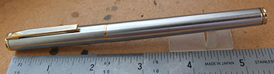 shea281: A nice undamaged Targa fountain pen in brushed steel finish with gold-plated trim; the pen has a medium grade steel inlet nib and writes delightfully; the pen uses cartridges or a converter and there is a converter fitted. £55.00 |