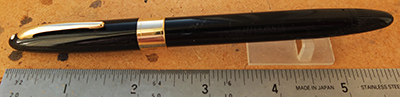 shea243: A very nice USA-made snorkel fountain pen from 1956 or thereabouts in black with gold-plated trim; the pen is a snorkel-filler and has a lovely medium grade 14ct gold No.5 nib £75.00 SOLD |