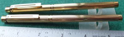 shea287: A very nice Targa fountain pen and rollerball pen set in gold electroplated caps and barrels; the fountain pen has a fine grade steel nib and was made around 1985; I think this fountain pen would have had a 14ct gold nib originally but it does have a converter fitted and comes with spare cartridges; boxed too. £65.00 |