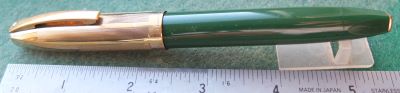 shea294: A very nice condition, albeit darkened, Sheaffer Lifetime Senior lever-fill fountain pen in green with gold plated trim. The pen has a very nice Lifetime fine grade 14ct gold nib. £175.00 |