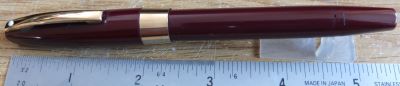 shea270: A very nice Australian-made snorkel fountain pen from 1956 or thereabouts in burgundy with gold-plated trim; the pen is a snorkel-filler and has a lovely medium grade palladium silver conical nib £65.00 |