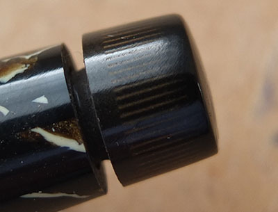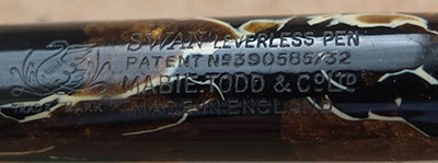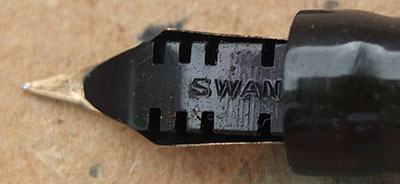 Here is a classy-looking Swan L205/472 leverless in very nice condition, albeit a little worn through use, with a 14ct gold fine grade No.2 nib; the pen is in very good condition but there are signs of use in the form of a little wear where the cap fits and where it has been posted; there are no cracks, splits or serious scratches and only slight signs of plating wear on the clip and the band; the nib, by my classification, is a nice writer and quite flexible; this pen would make a good daily-use pen or could be added to a collection and not look out of place.