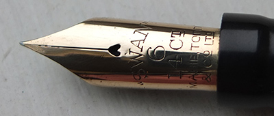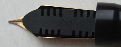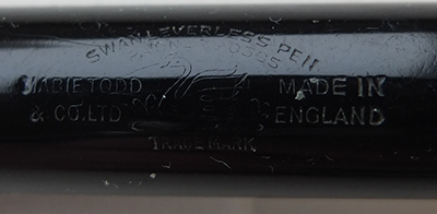 Here is a classy-looking Swan 1060 leverless in very nice condition, albeit a little worn through use, with a 14ct gold extra-fine grade No.6 slightly flexible nib; the pen is in very good condition but there are signs of use in the form of a little wear where the cap fits and where it has been posted; there are no cracks, splits or serious scratches and only slight signs of plating wear on the clip and the band; the nib, by my classification, is a nice writer and a little flexible; this pen would make a good daily-use pen or could be added to a collection and not look out of place.