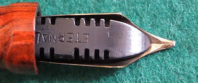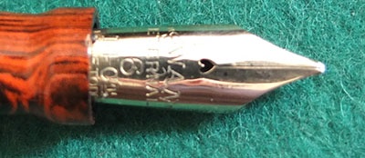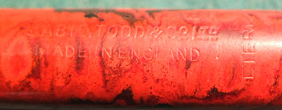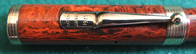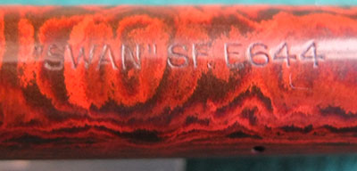Here is a nice-condition and quite rare Swan Eternal SF E644, made around 1925, by Mabie Todd & Co Ltd in England; the pen is a lever-filler and has a little wear where the cap fits but not where it has been posted; the nib is a medium grade 14ct gold No.6 and writes nicely; there are no cracks, splits or serious scratches and the plating on the cap is good but the lever has a few marks; the imprints are all readable.