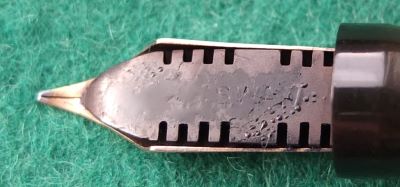 Here is a classy-looking Swan 1060 leverless in very nice condition, albeit a little worn through use, with a 14ct gold fine grade No.6 Eternal nib; the pen is in very good condition but there are signs of use in the form of a little wear where the cap fits and where it has been posted; there are no cracks, splits or serious scratches and only slight signs of plating wear on the clip and the bands; the nib, by my classification, is a nice writer but not flexible; this pen would make a good daily-use pen or could be added to a collection and not look out of place.
