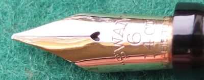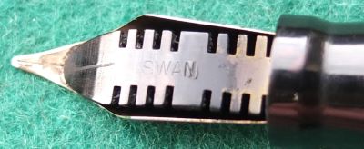 Here is a classy-looking Swan 2060 leverless in very nice condition, albeit a little worn through use, with a 14ct gold medium grade No.6 nib; the pen is in very good condition but there are signs of use in the form of a little wear where the cap fits but not where it has been posted; there are no cracks, splits or serious scratches and only slight signs of plating wear on the clip and the bands; the nib, by my classification, is a nice writer a d quite flexible; this pen would make a good daily-use pen or could be added to a collection and not look out of place.