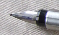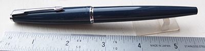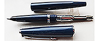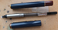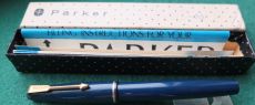 bel326: A lightly used Parker 45 fountain pen in blue with a fine grade nib; this pen still has a 'F' chalk mark on the barrel which shows it hasn't been used much; it uses cartridges or a converter and there is a converter fitted; both are readily available on the High Street. £15.00 SOLD |