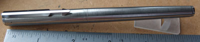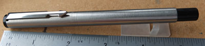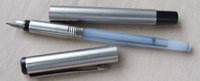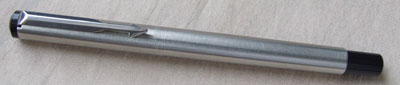 bel237: An unused Parker fountain pen in brushed steel with a medium grade nib; it uses cartridges or a converter and both are readily available on the High Street. £15.00