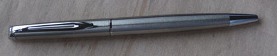 bel074: A very functional and hardly used, if ever used, Waterman ballpen in brushed steel with chrome trim and boxed; it is lovely and it is in working order; this good enough to be a gift for a loved one £15.00 |