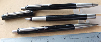 bel320: A lightly used Parker Televisor Junior pencil in black with gold filled trim; it has spare leads and a useable eraser. £15.00 |