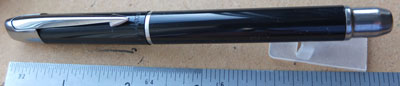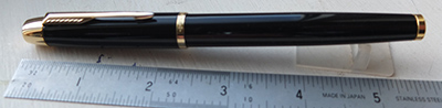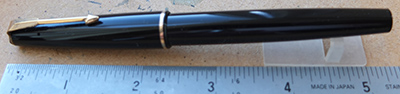 bel300: A lightly used Parker 17 fountain pen in black with gold-filled trim and a medium grade nib; it is a piston-filler and needs ink from a bottle. £22.00 SOLD