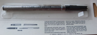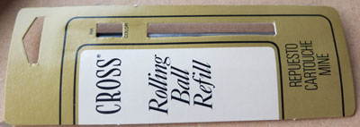 bel160: A Cross blister pack of one rolling ball refill in black; these are new-old-stock from a closing-down shop I cleared but I have opened a few and all have been just perfect. £3.00 Please note I have about a dozen of these available and postage to UK addresses is only £2.00.