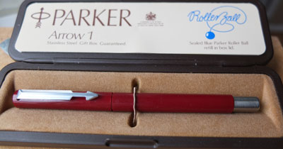 bel226: A Parker ballpoint pen in red with a red refill and boxed; this one has been used. £5.00 |