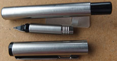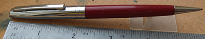 bel284: A lightly used Platignum pencil in red with a brushed steel cap and nozzle; the pencil is in working order and has spares leads in the top. £10.00 |