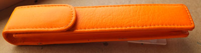 bel244: A lightly used fountain pen, ballpen or pencil case in orange leather-look finish; it will house one pen. £25.00