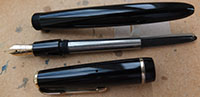 bel336: A lightly used Parker 45 fountain pen in black with a medium grade 14ct gold nib and gold-filled trim; it uses cartridges or a converter and both are readily available on the High Street. £30.00 SOLD |