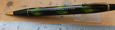 bel290: A lightly used unnamed pencil in green and black marble with a gold-plated trim; the pencil is in working order and has spares leads in the top. £10.00 SOLD |