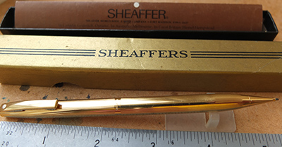 bel319: A lightly used Sheaffer pencil in gold electroplated finish with spare leads and a new eraser. £25.00 SOLD |
