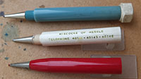 bel324: A used three-colour pencil in red, white and blue with appropriate colour leads; there is a crack in the white segment but it doesn't detract from its usefulness; there are spare leads in the blue end. £5.00 |