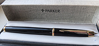 bel330: A lightly used Parker fountain pen in black laque finish with a medium grade nib; it uses cartridges or a converter and has a converter fitted; both cartridges and converters are readily available on the High Street. £25.00 |