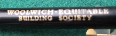 bel332: A lightly used propelling pencil in black with a Woolwich Equitable Building Society monogram on the side; it uhas lead and spare leads in the magazine. £15.00 SOLD |
