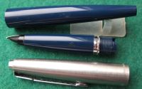 bel138: A nice condition mechanically sound Parker rollerball pen with lustaloy trim; the pen uses standard Parker refills which are readily available £15.00 |