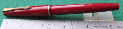 bel340: A lightly used Parker 17 fountain pen in red with gold-filled trim and a broad oblique grade 14ct gold nib; it is a squeezy-fill and needs ink from a bottle. £22.00 SOLD