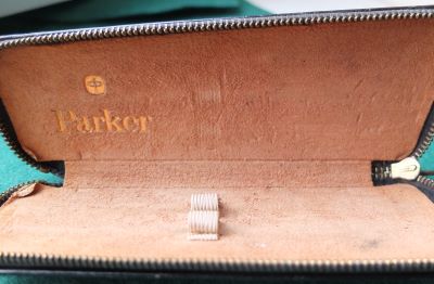 bel342: An unbroken but used Parker fountain pen leather pouch to hold two pens/pencils. £25.00 SOLD |