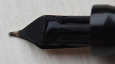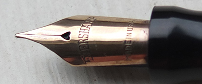 A very nice Wahl Oxford lever-filling fountain pen with gold-filled trim; this pen has a nice fine grade 14ct gold semi-flex nib; there is little or no wear apparent on the pen but the plating is poor on the clip and lever but good on the bands; generally the pen is very good with an undamaged, secure and springy clip.