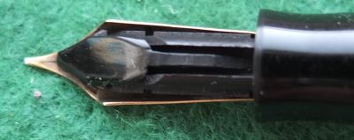 A very nice Wahl Eversharp Doric fountain pen in the standard size; the pen is in the Morocco finish with gold-filled trim; this pen is a lever-filler and has a nice fine grade 14ct gold adjustable nib; there is no wear apparent on the barrel where the cap fits and where it is posted and the plating is good; generally the pen is very good with an undamaged, secure and springy clip.