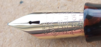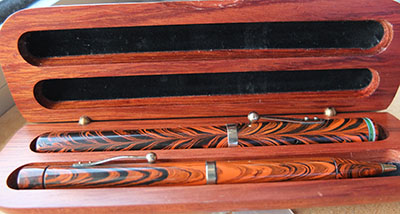 > No.7 Set in Red Ripple, the Pen with Green Nib