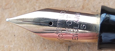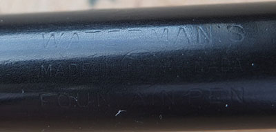 Here we have a very nice desk pen with a fine grade 14ct gold No.5 nib; the imprint on the barrel is hardly readable; the plating on the lever and the bands is good; there are no cracks, splits or noticeable scratches; this is a big pen.