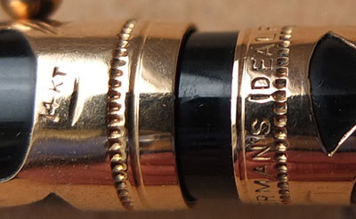 Here is a very nice and quite rare 14kt solid gold 514 eye-dropper-fill fountain pen in black with a 14kt gold filigree overlay; it was made around 1905 and has been used quite carefully; it looks lovely and will perform really well; the pen has a fine grade 14ct gold semi-flexible No.4 nib; it needs to be filled from a bottle using a pipette. The pen is in super condition with no name or initials on the cartouche, and the clip is secure. These Watermans are difficult to find, especially ones as good as this.