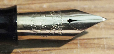 Here is a very nice and quite rare Canadian Waterman's Patrician in moss agate finish with a rare clipless cap; the lever and leverbox are both good as is the globe on the end of the barrel; it was made around 1930 and has had little use; this is a pretty pen with gold-plated trim and an enormous 14ct gold Canadian Patrician extra-fine grade nib; it looks lovely and will perform really well; the imprint is very readable and the plating is good. You will be thrilled with this one as the price is so reasonable for such a rare pen.