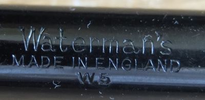 Here we have a very nice W5 in black with a good imprint on the barrel and no sign of posting; the plating is very good on the clip and the bands but a little pitting on the lever; there are no cracks or splits and very few small scratches; the pen has a fine grade 14ct gold W5 nib; the clip is secure. They don't come much better than this.