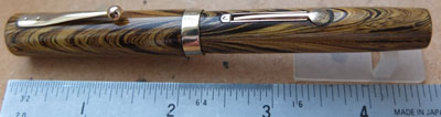 wart192: An Exclusive fountain pen from around 1989 in brown and black marble with gold-plated trim; the pen has been used but still is in lovely condition with a medium grade 18ct gold nib. £85.00 |