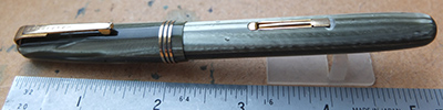 wart225: A very-nice very-rare mechanically sound jade Transition Patrician with a beautiful slightly-flexible fine grade 14ct gold No. 5 nib; this pen differs from the standard Patrician in as much as it has a riveted clip, globe lever, non-standard rounded ends, and a cap band that could be solid gold. £1250.00 |