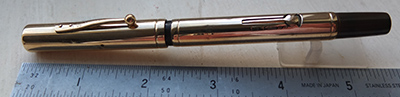 wart232: A very nice 9ct-gold plane finish over black hard rubber lever-filler in nice condition; this is the clipless type with a medium grade softish No.2 nib; writes beautifully too. £325.00 SOLD |